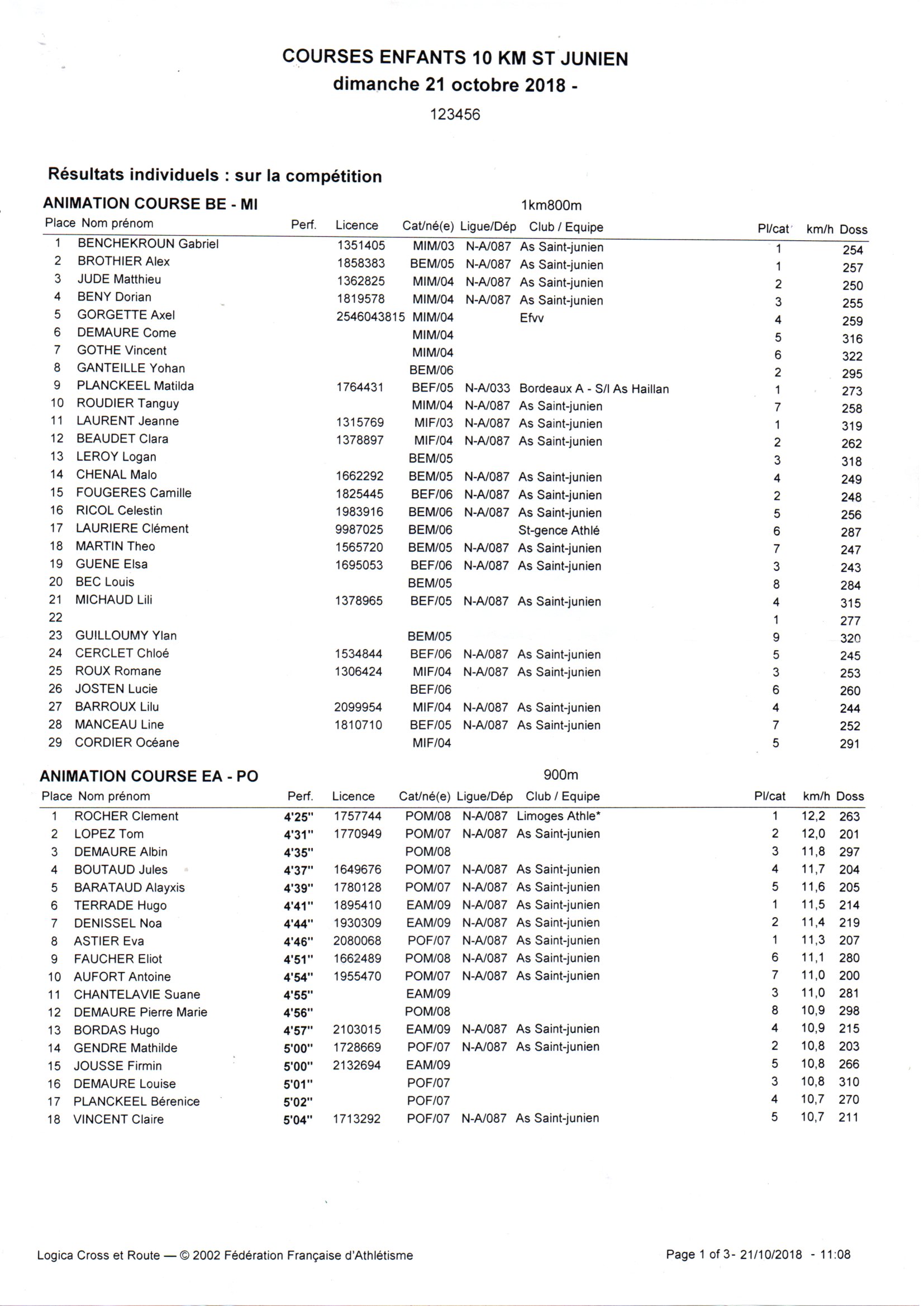 Horaire équipe Athlé Saint-Junien 13/05